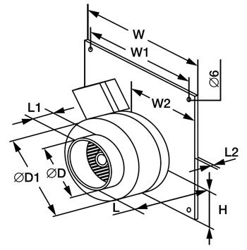 | Модель | D, мм | D1, мм | L, мм | L1, мм | L2, мм | W, мм | W1, мм | W2, мм | H, мм |